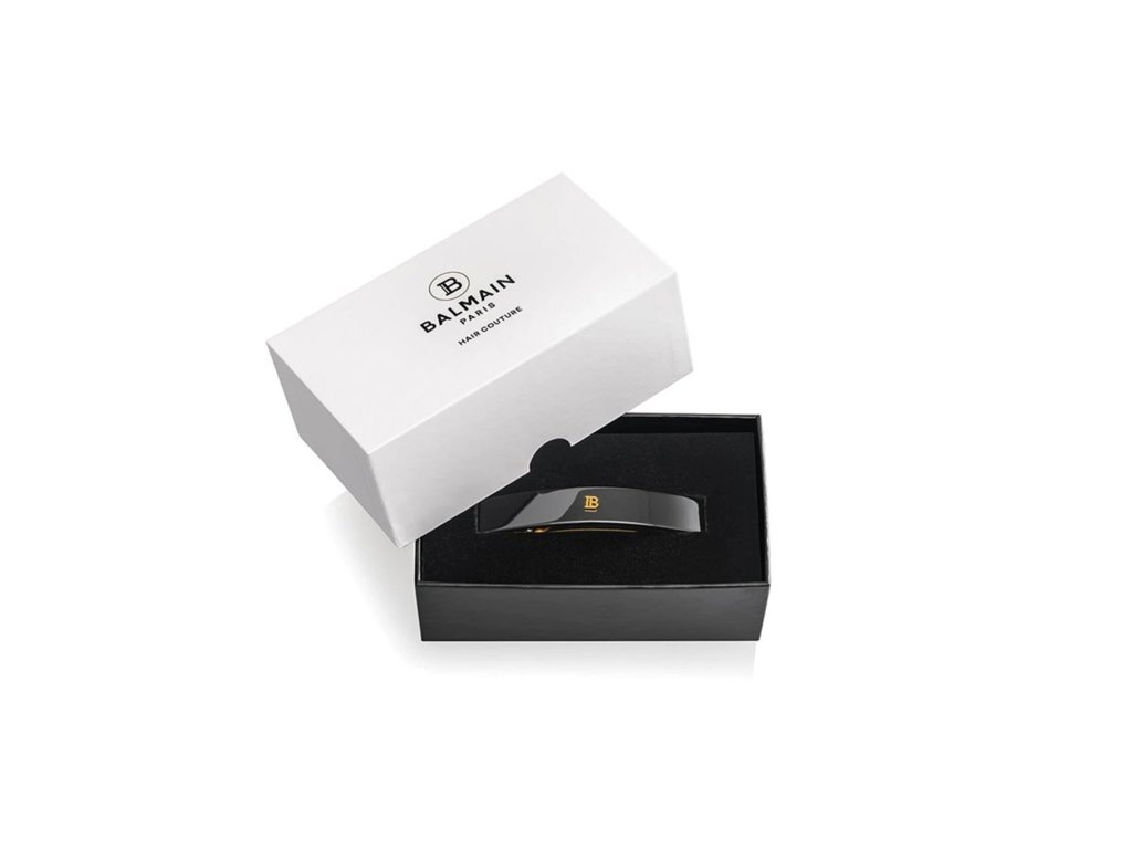 Vysoko kvalitný, ručne vyrobený vlasový klip z odolného acetátu celulózy, zdobený typickým znakom "B" vyvedeným z 14karátového plátkového zlata. Veľmi pevný, avšak pružný materiál je hypoalergénny a šetrný voči vlasom aj pokožke hlavy.